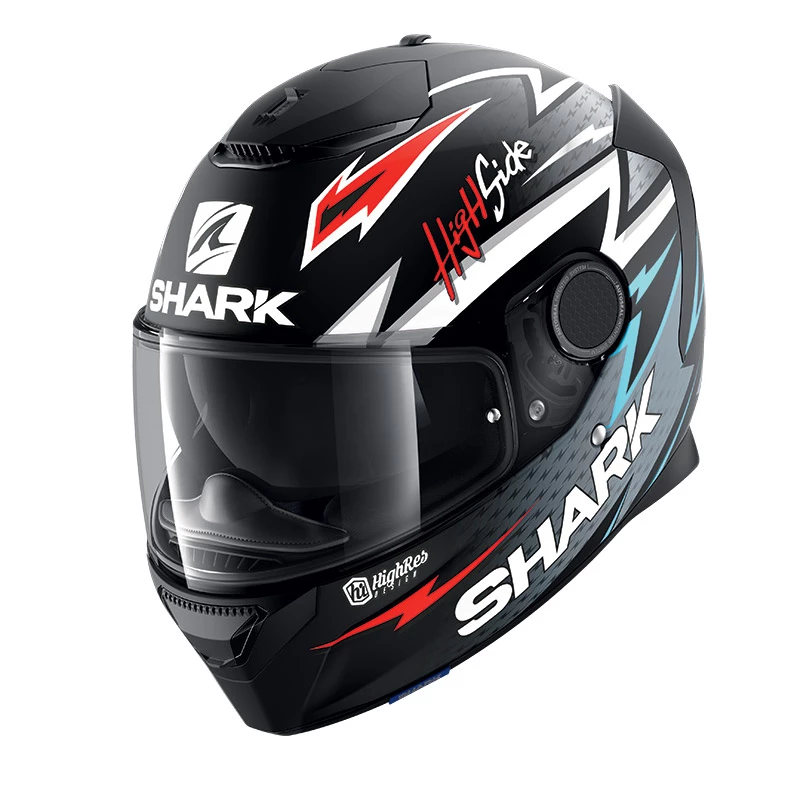 Aerodynamically-shaped “SHARK Skin” side fastenings on the peak favoring passive noise abatement.