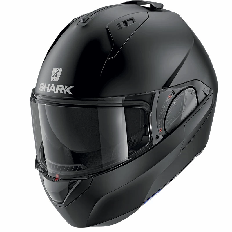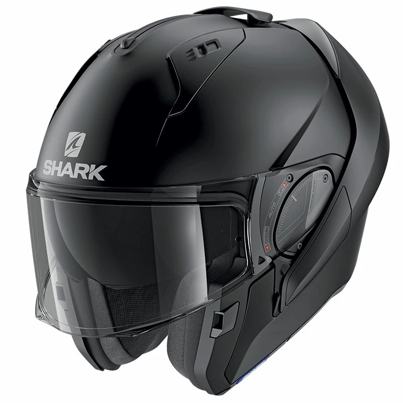 The EVO-ES embodies all of SHARK’s expertise in the design of modular helmets for daily users seeking to enjoy optimal protection whether in the jet or integral position. Structure and safety: Shell made of injected thermoplastic resin. 2 shell sizes for optimal morphological adjustment. Micro lock buckle system. Multi-density EPS. Visor: VZ 150 model, anti-scratch and anti-fog visor. The patented “Auto-up / Auto-down” system allows automatically lifting the visor upon raising or lowering the chin guard. UV380-labeled visor treated to resist scratches. Quick visor release system. Inside: “BIRD EYES” lining fabric, black color. “EasyFit” system: Optimal comfort for riders wearing glasses
