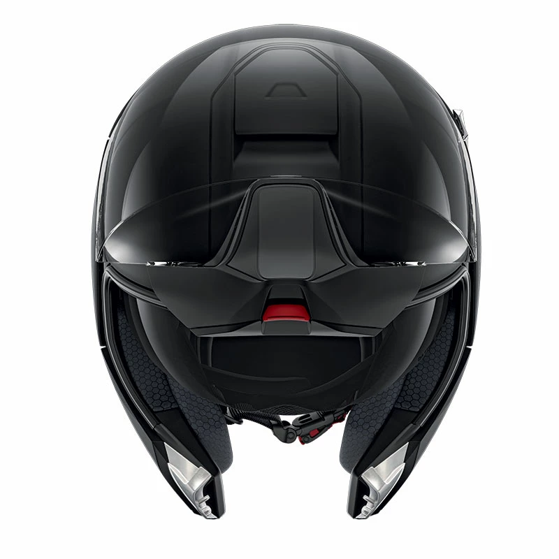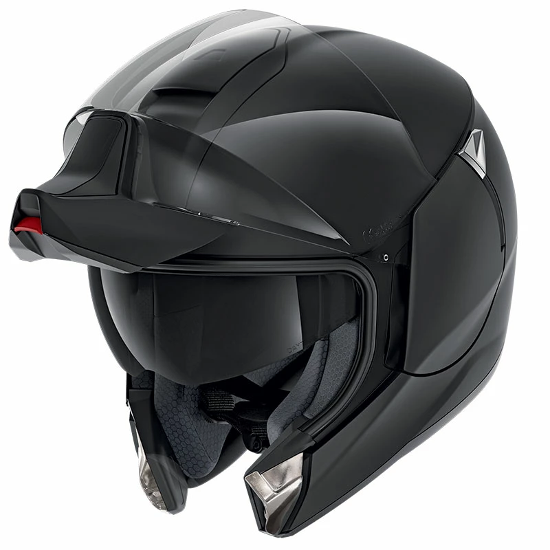 EVOJET: urban mobility without sacrificing safety. The Discovery range has welcomed a new family member with the arrival of EVOJET. This brand-new model meets the expectations of urban and suburban users looking to benefit from a safety-first helmet with an innovative design, combining the advantages of a jet, modular and integral models all at once. Thanks to its state-of-the-art concept of a chin guard built into the visor, users’ trips are made in completely safety, whether the helmet is in the open or closed position, while enjoying a wide field of vision just like a jet helmet. The full-face EVOJET helmet offers an optimal level of protection no matter where the impact points are located. An innovative design. EVOJET’s new aesthetic codes have been inspired by the urban mobility scene: modern, technological, urban and elegant. Its sophisticated appearance and two-tone finish, directly inspired from today’s cars, make EVOJET the quintessential trendy urban helmet. Its minimalist design has been worked and reworked down to the most minute detail: the entire mechanical system has been carefully concealed behind the side plates for a truly streamlined style. Structure and safety: Shell made of injected thermoplastic resin. 2 shell sizes for optimal morphological adjustment. Micro lock buckle system. Multi-density EPS. New concept of a visor that fully incorporates the chin guard. Visor: Optical Class 1-rated visor featuring variable thicknesses. Anti-scratch and anti-fog visor. UV380-labeled sun visor treated to resist scratches. Dynamic anti-fog ventilation configuration. Inside: AEGIS®-labeled MICROTECH lining fabric made from recycled fibers featuring antibacterial properties. Removable interior suitable for machine washing (30°C max). “EasyFit” system: Optimal comfort for riders wearing glasses. Slot reserved for the Sharktooth® intercom. Aerodynamics and ventilation: 2 air inlets. 1 air extractor. Aerodynamics optimized by means of CFD (Computational Fluid Dynamics) design studies.