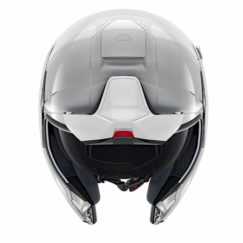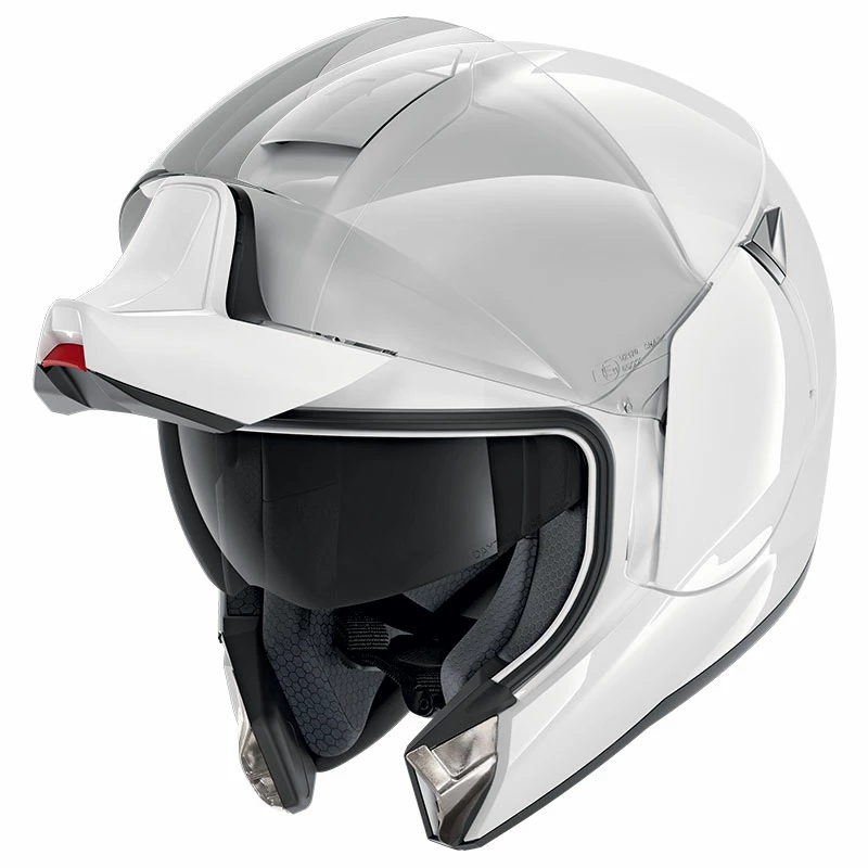 EVOJET: urban mobility without sacrificing safety. The Discovery range has welcomed a new family member with the arrival of EVOJET. This brand-new model meets the expectations of urban and suburban users looking to benefit from a safety-first helmet with an innovative design, combining the advantages of a jet, modular and integral models all at once. Thanks to its state-of-the-art concept of a chin guard built into the visor, users’ trips are made in completely safety, whether the helmet is in the open or closed position, while enjoying a wide field of vision just like a jet helmet. The full-face EVOJET helmet offers an optimal level of protection no matter where the impact points are located. An innovative design. EVOJET’s new aesthetic codes have been inspired by the urban mobility scene: modern, technological, urban and elegant. Its sophisticated appearance and two-tone finish, directly inspired from today’s cars, make EVOJET the quintessential trendy urban helmet. Its minimalist design has been worked and reworked down to the most minute detail: the entire mechanical system has been carefully concealed behind the side plates for a truly streamlined style. Structure and safety: Shell made of injected thermoplastic resin. 2 shell sizes for optimal morphological adjustment. Micro lock buckle system. Multi-density EPS. New concept of a visor that fully incorporates the chin guard. Visor: Optical Class 1-rated visor featuring variable thicknesses. Anti-scratch and anti-fog visor. UV380-labeled sun visor treated to resist scratches. Dynamic anti-fog ventilation configuration. Inside: AEGIS®-labeled MICROTECH lining fabric made from recycled fibers featuring antibacterial properties. Removable interior suitable for machine washing (30°C max). “EasyFit” system: Optimal comfort for riders wearing glasses. Slot reserved for the Sharktooth® intercom. Aerodynamics and ventilation: 2 air inlets. 1 air extractor. Aerodynamics optimized by means of CFD (Computational Fluid Dynamics) design studies.