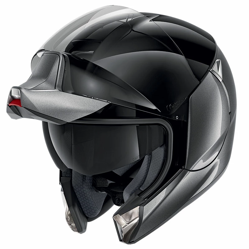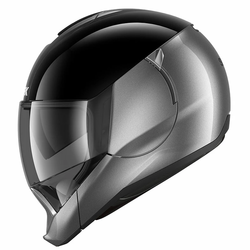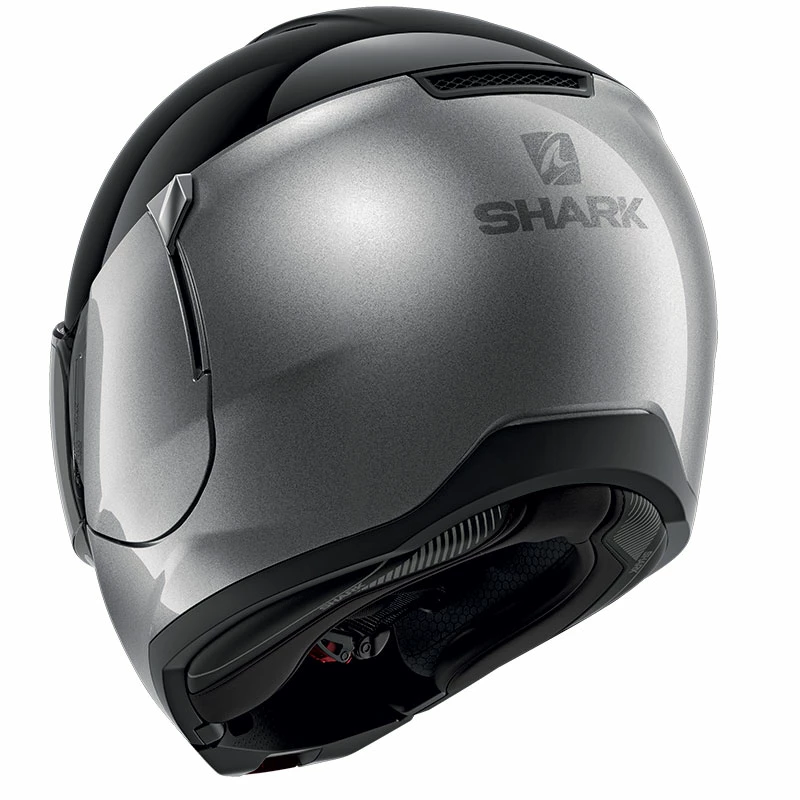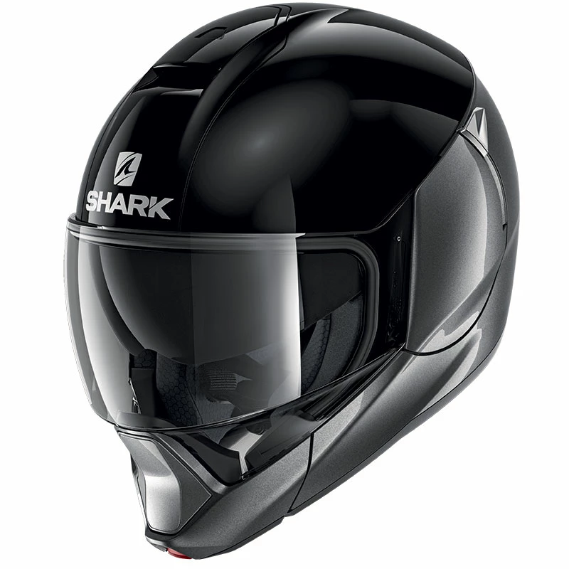 EVOJET: urban mobility without sacrificing safety. The Discovery range has welcomed a new family member with the arrival of EVOJET. This brand-new model meets the expectations of urban and suburban users looking to benefit from a safety-first helmet with an innovative design, combining the advantages of a jet, modular and integral models all at once. Thanks to its state-of-the-art concept of a chin guard built into the visor, users’ trips are made in completely safety, whether the helmet is in the open or closed position, while enjoying a wide field of vision just like a jet helmet. The full-face EVOJET helmet offers an optimal level of protection no matter where the impact points are located. An innovative design. EVOJET’s new aesthetic codes have been inspired by the urban mobility scene: modern, technological, urban and elegant. Its sophisticated appearance and two-tone finish, directly inspired from today’s cars, make EVOJET the quintessential trendy urban helmet. Its minimalist design has been worked and reworked down to the most minute detail: the entire mechanical system has been carefully concealed behind the side plates for a truly streamlined style. Structure and safety: Shell made of injected thermoplastic resin. 2 shell sizes for optimal morphological adjustment. Micro lock buckle system. Multi-density EPS. New concept of a visor that fully incorporates the chin guard. Visor: Optical Class 1-rated visor featuring variable thicknesses. Anti-scratch and anti-fog visor. UV380-labeled sun visor treated to resist scratches. Dynamic anti-fog ventilation configuration. Inside: AEGIS®-labeled MICROTECH lining fabric made from recycled fibers featuring antibacterial properties. Removable interior suitable for machine washing (30°C max). “EasyFit” system: Optimal comfort for riders wearing glasses. Slot reserved for the Sharktooth® intercom. Aerodynamics and ventilation: 2 air inlets. 1 air extractor. Aerodynamics optimized by means of CFD (Computational Fluid Dynamics) design studies.